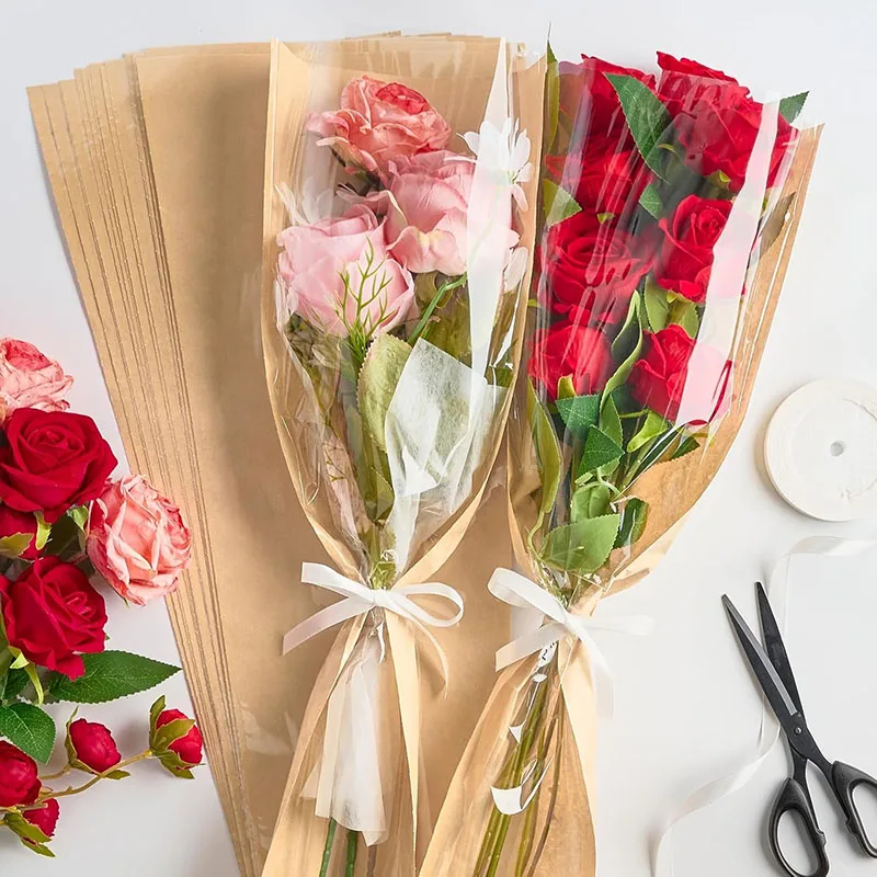 50pcs Flower Bouquet Bag Paper Bouquet Sleeve Flower Wrapping Paper Floral Bouquet Gift Packaging Supplies