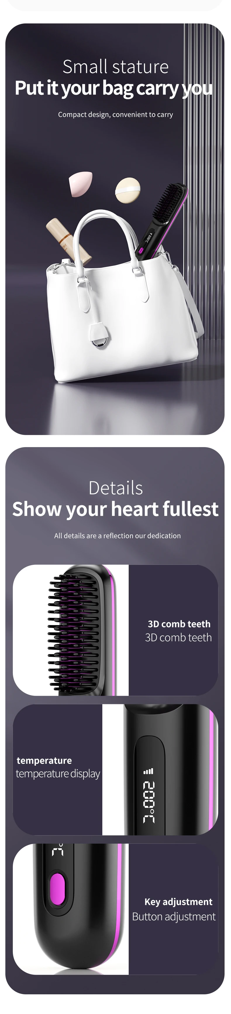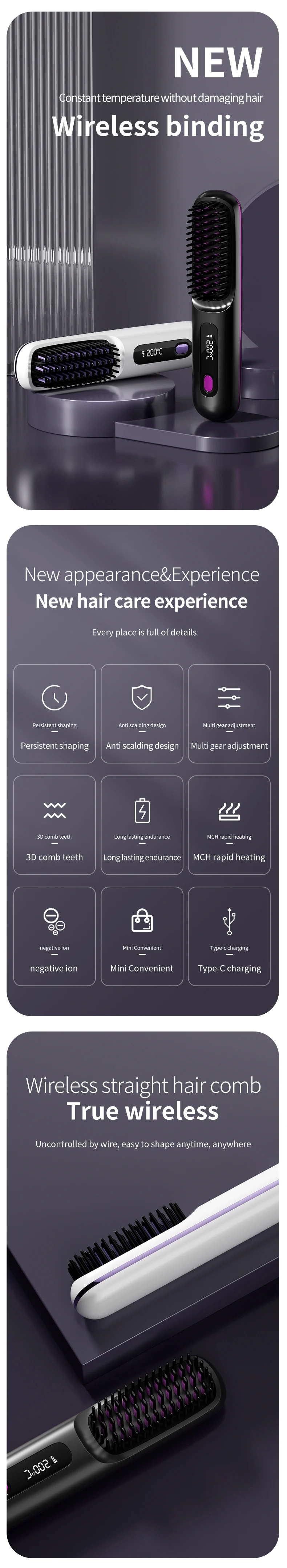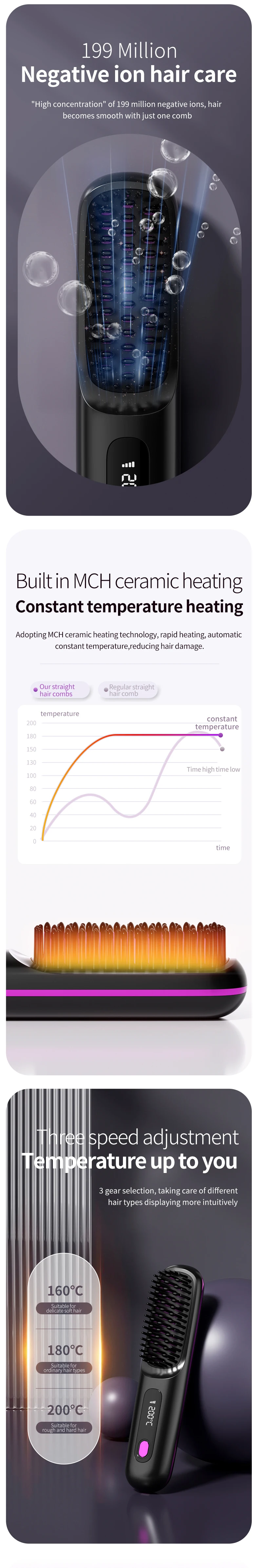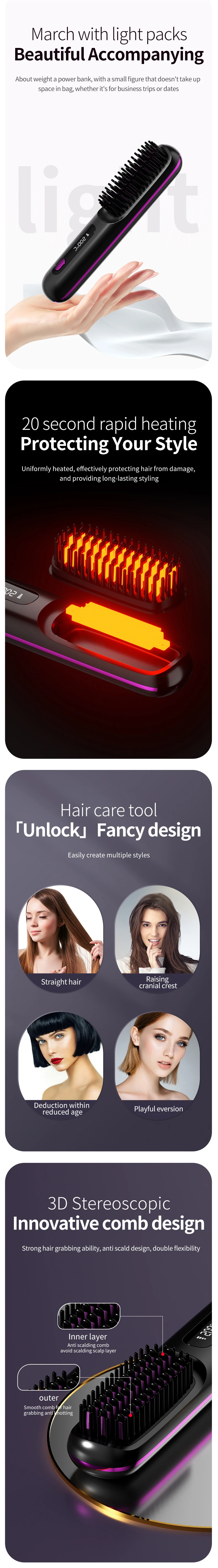 Electric Hot Air Brush Ceramic Hair Straightener Comb