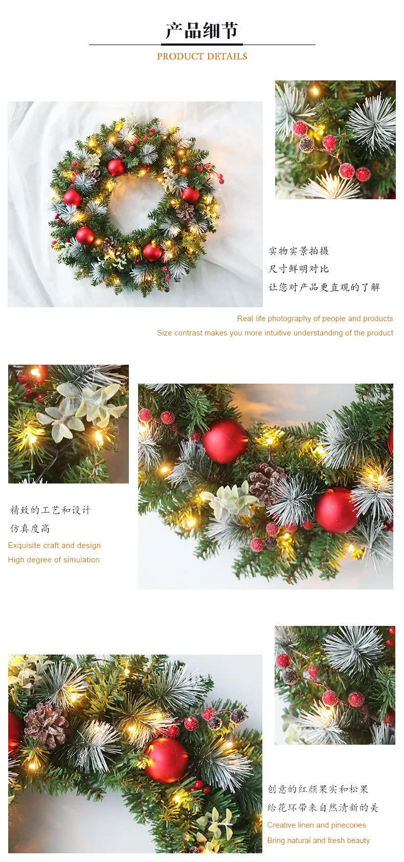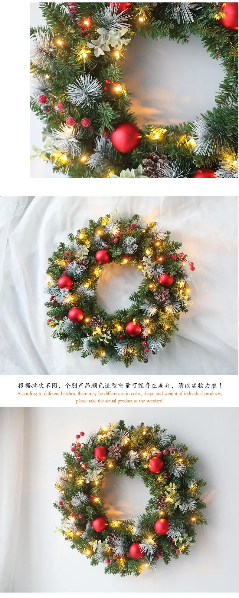 Elegant Red Christmas Wreath LED