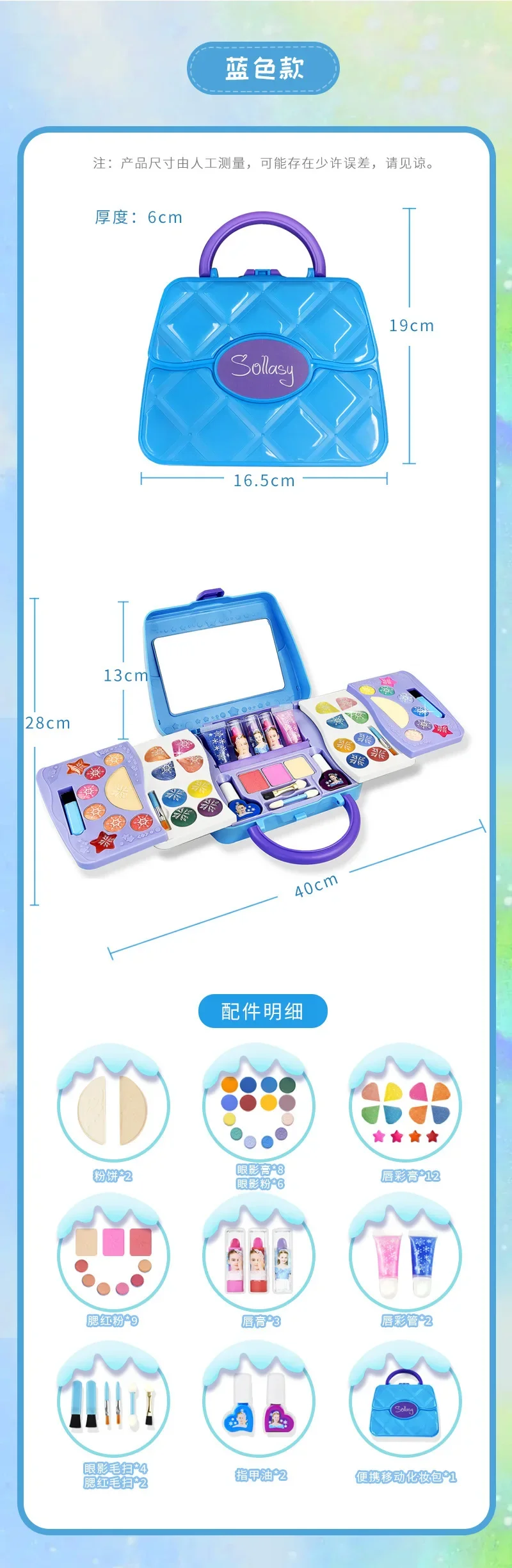 3:Washable Toy: Anytime you give your child a toy that you want to ensure their security. This cosmetic set provides children with toys for innovative games! This children's cosmetic set will not leave stains on clothes or furniture, and it can be washed.