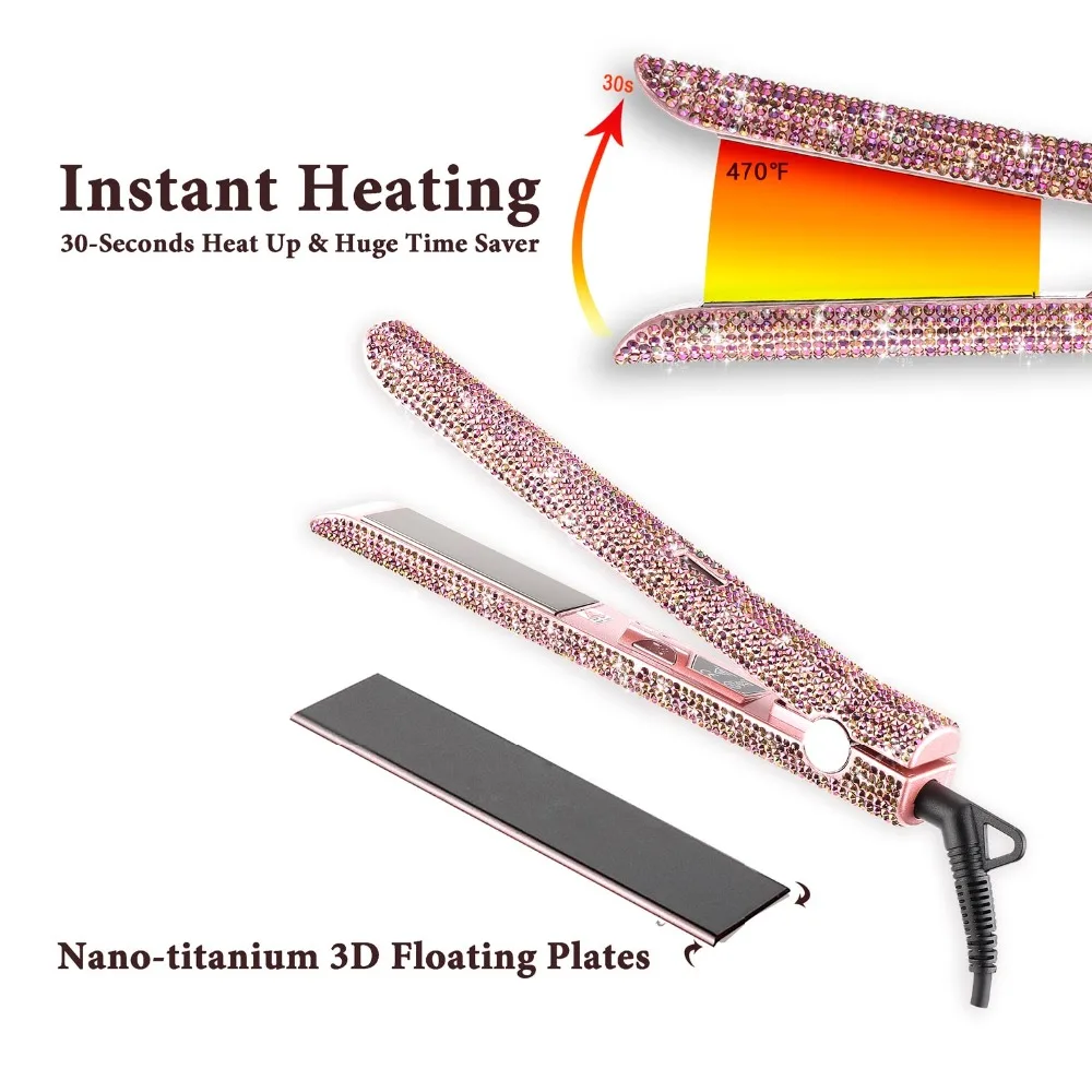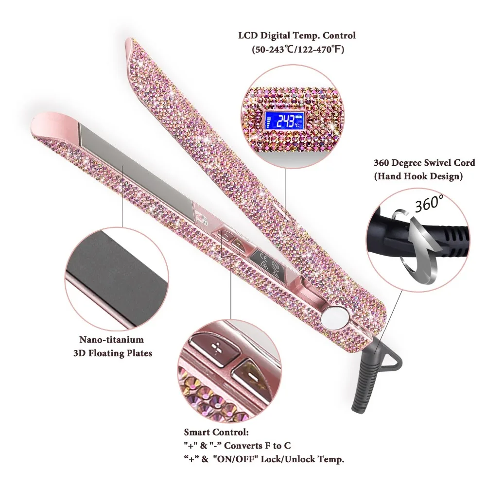 Hair Straightener Curler Bling Diamond Flat Iron Rhinestone
