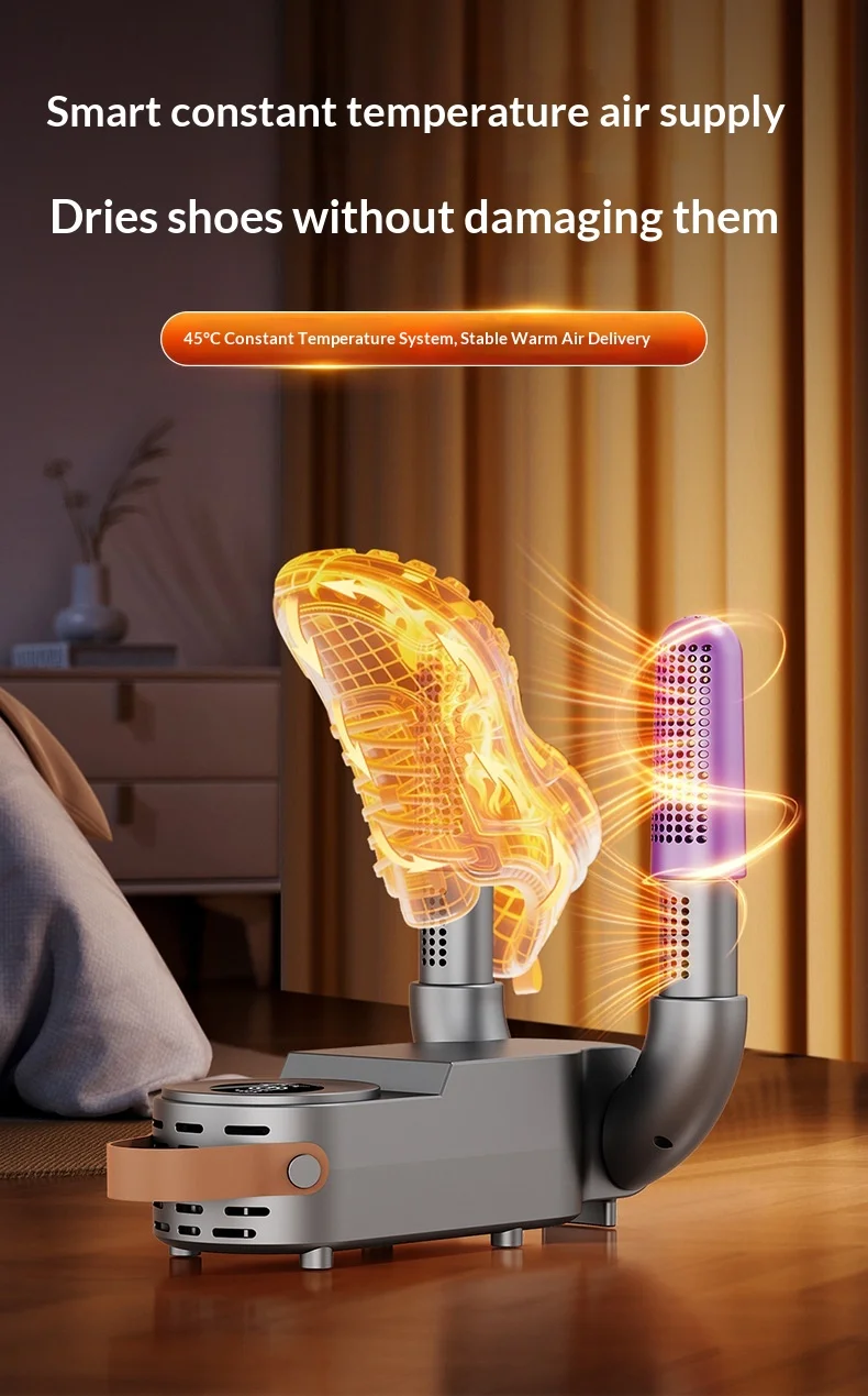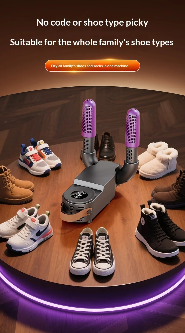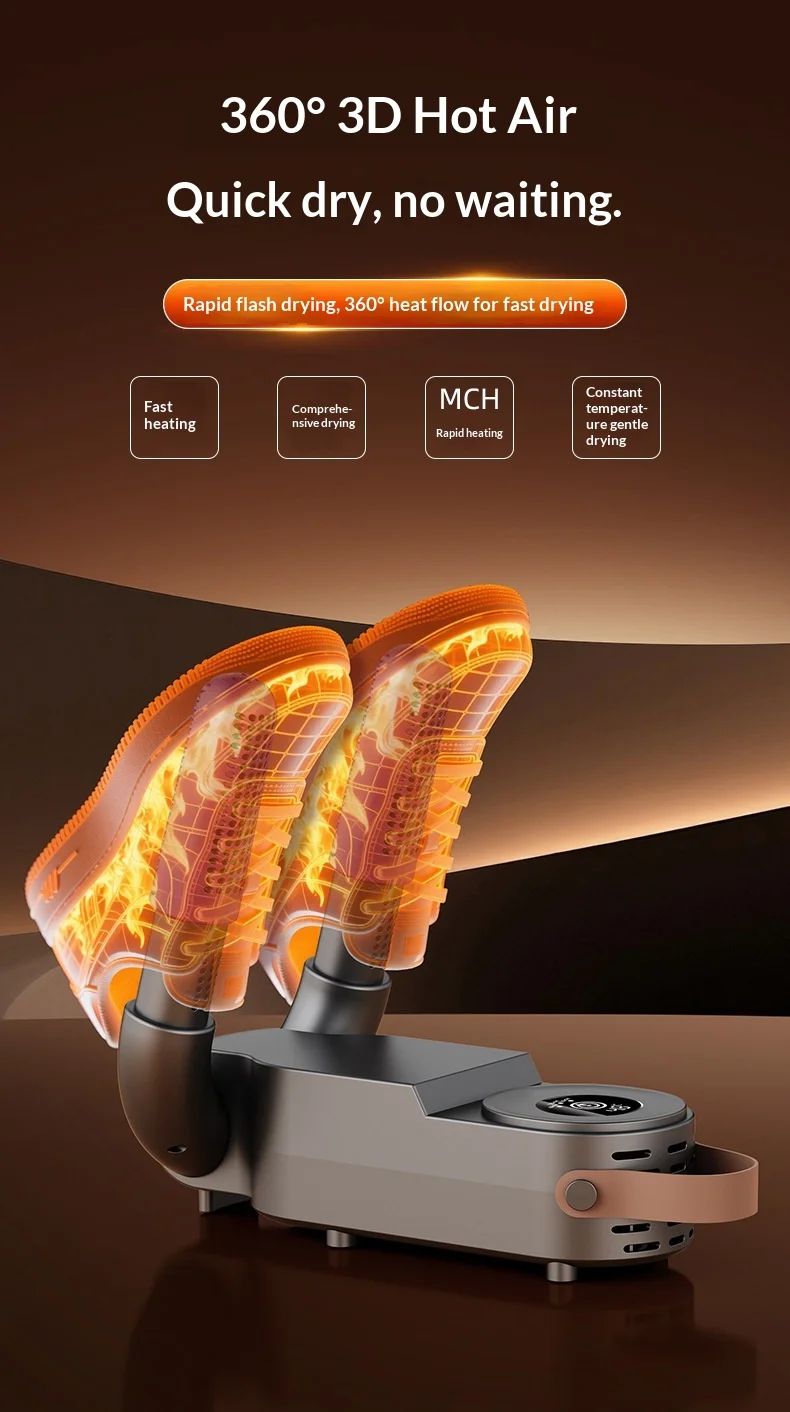 ✅ High Power Efficiency (150W): Engineered with a 150W high-performance motor, it delivers rapid heat circulation to dry shoes thoroughly in just 1–2 hours. No more waiting overnight!