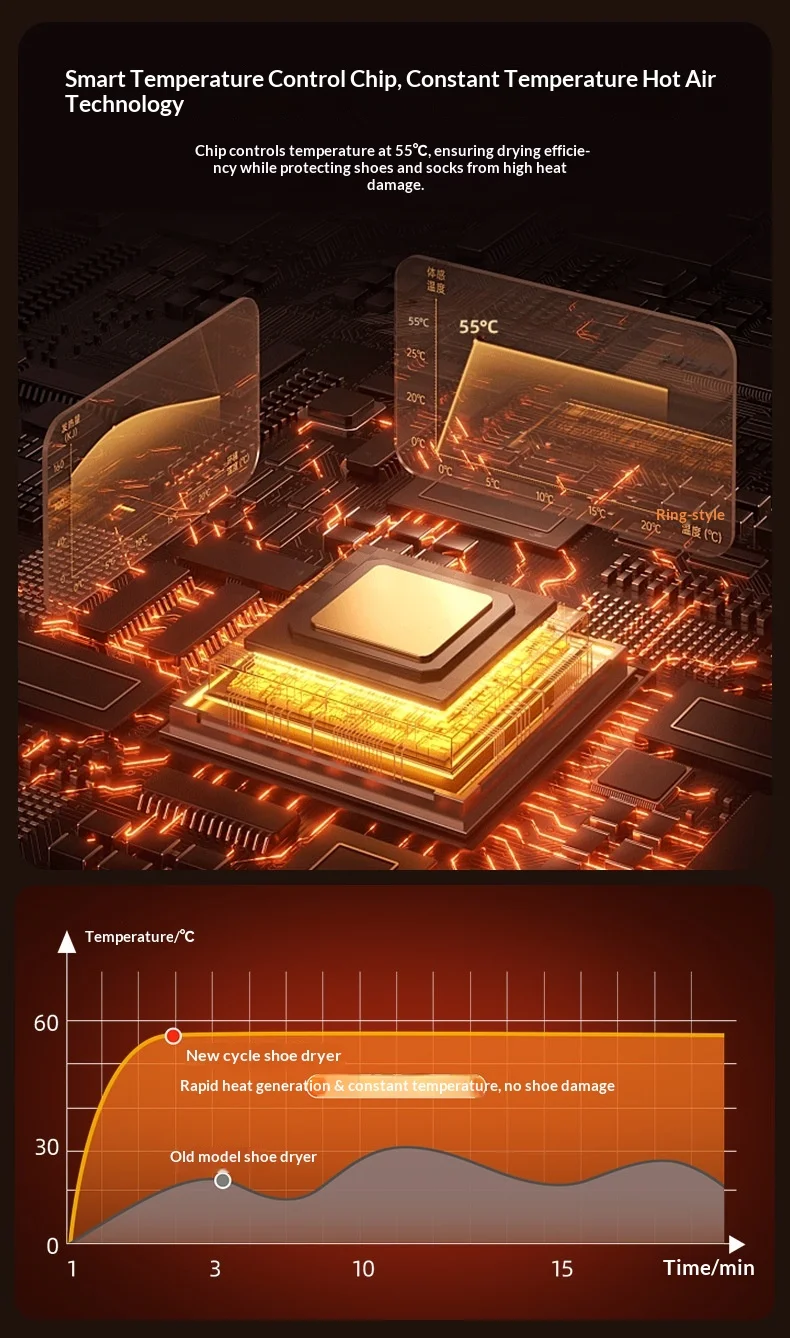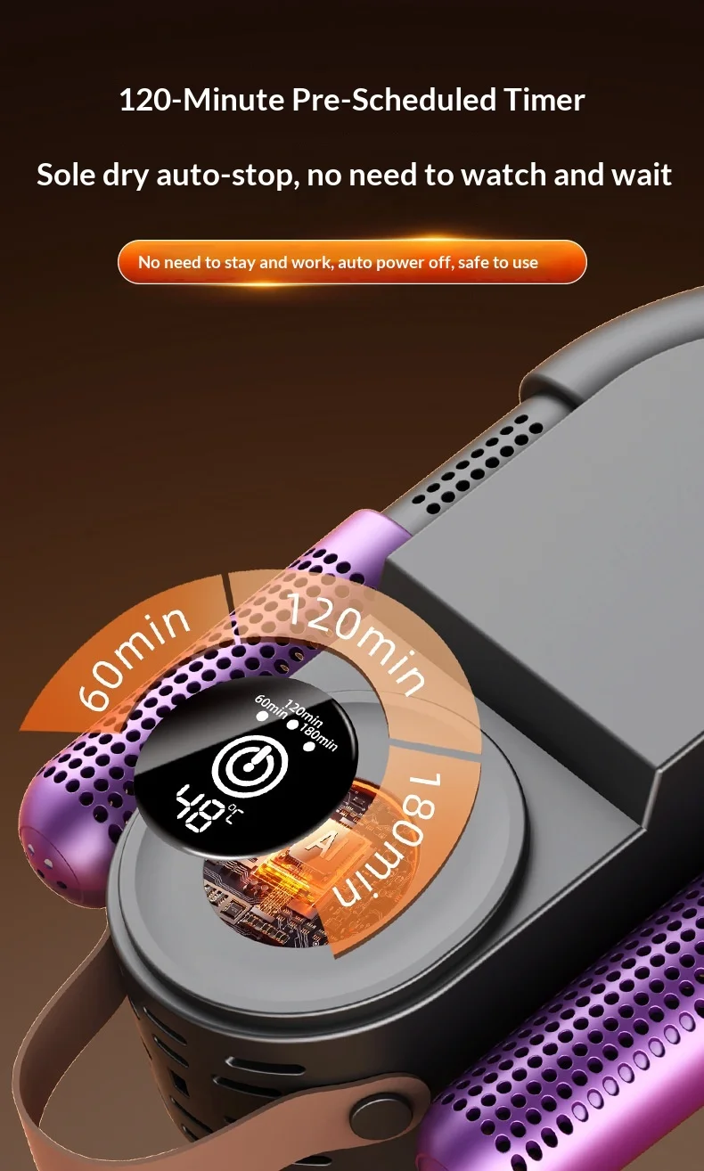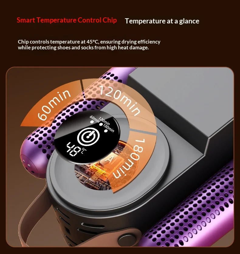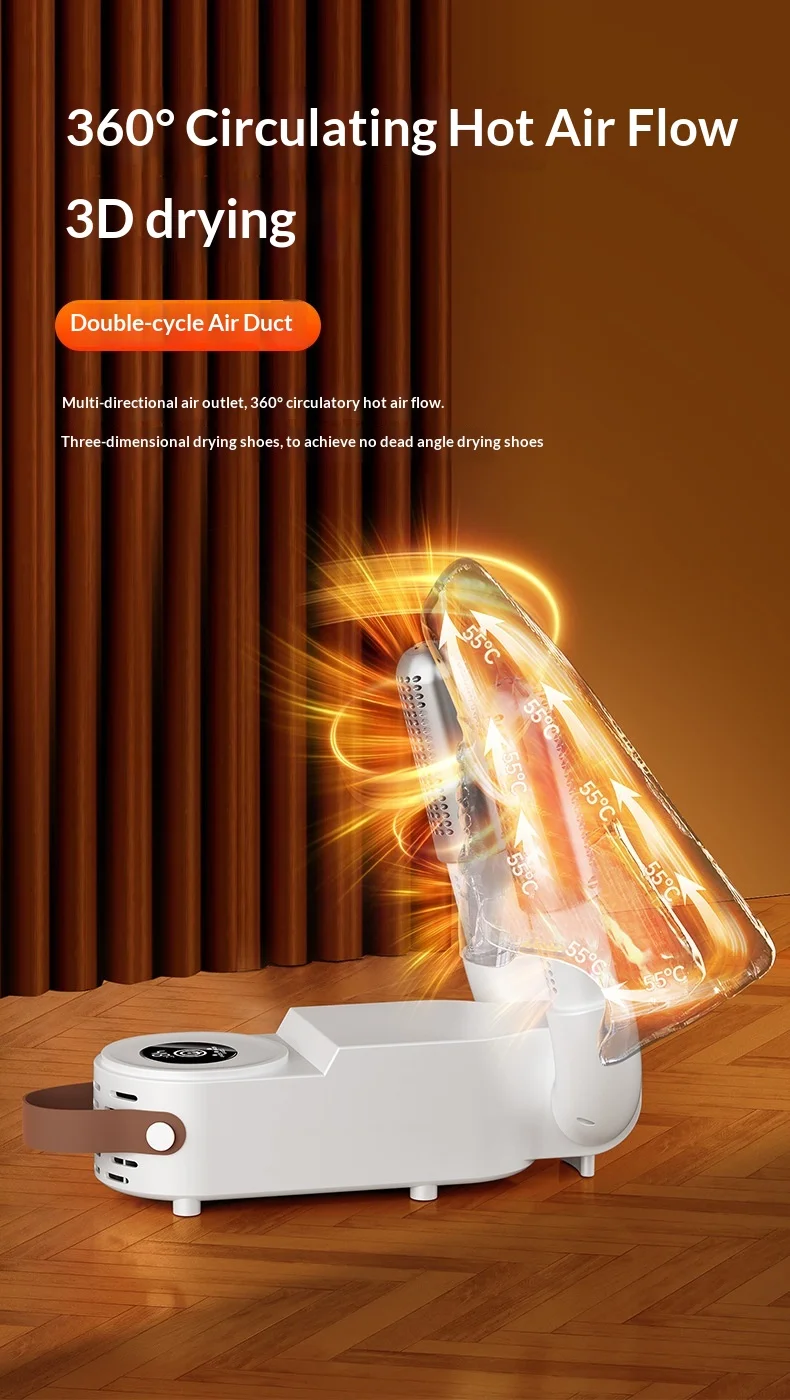 ✅ High Power Efficiency (150W): Engineered with a 150W high-performance motor, it delivers rapid heat circulation to dry shoes thoroughly in just 1–2 hours. No more waiting overnight!