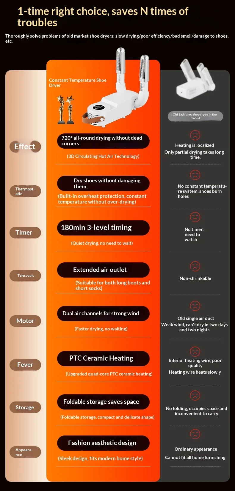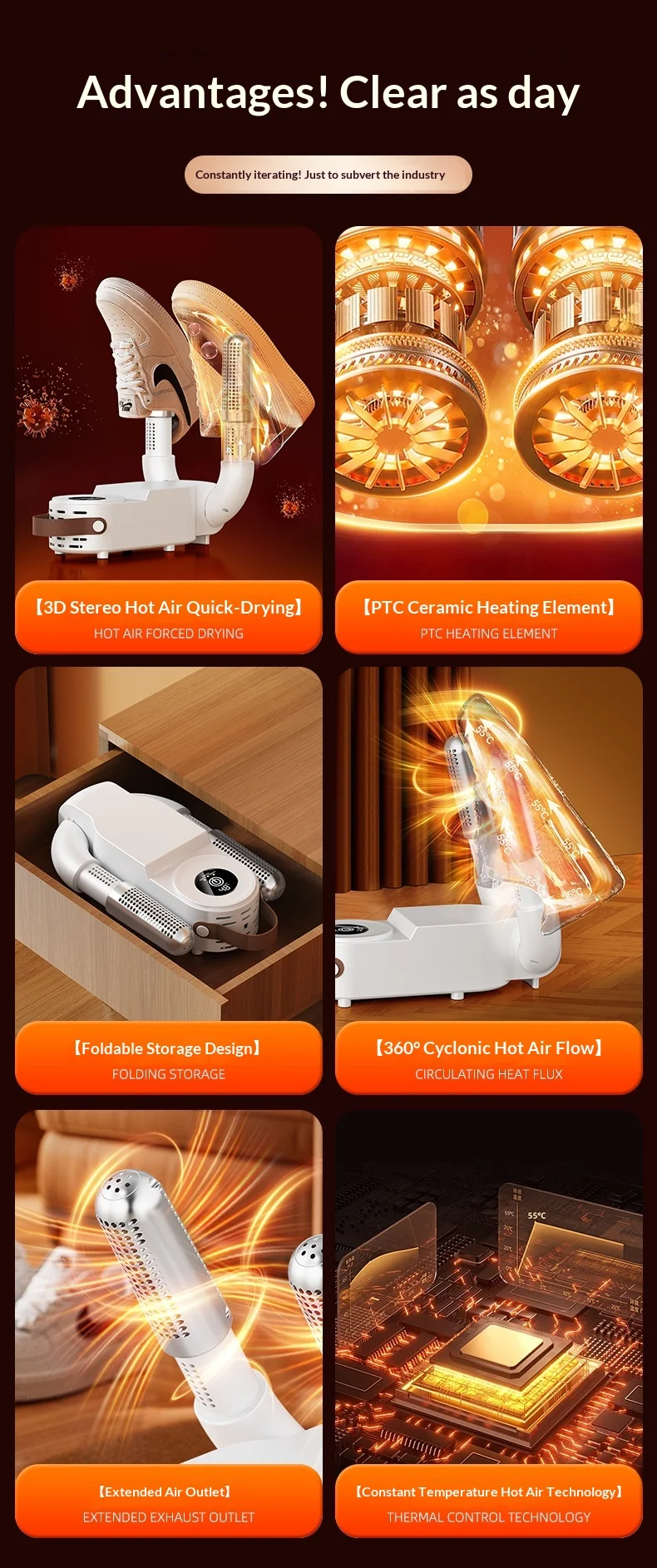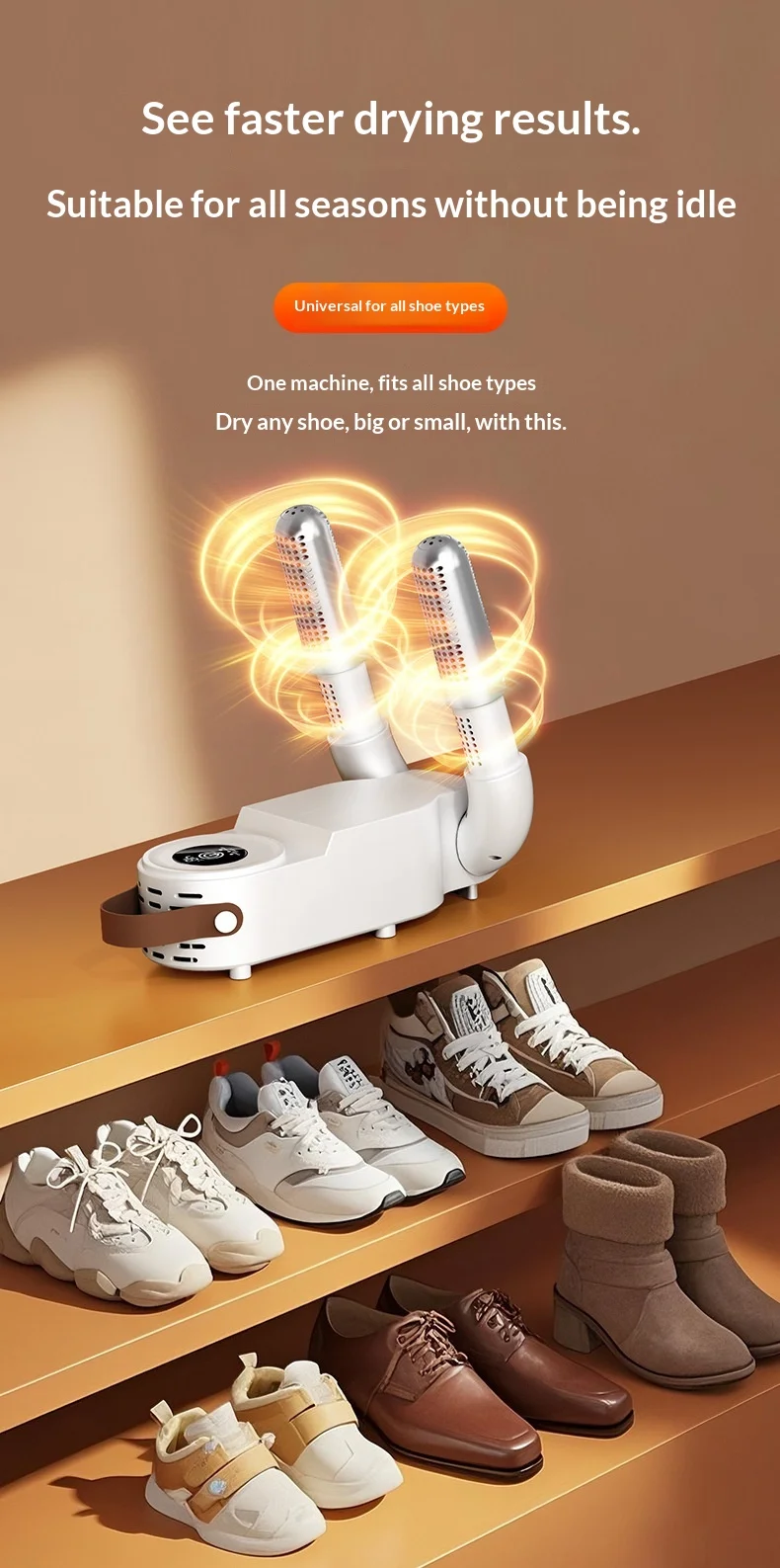✅ Active Odor Elimination: Built-in sterilization technology neutralizes bacteria and unpleasant smells, keeping your shoes hygienically fresh day after day.